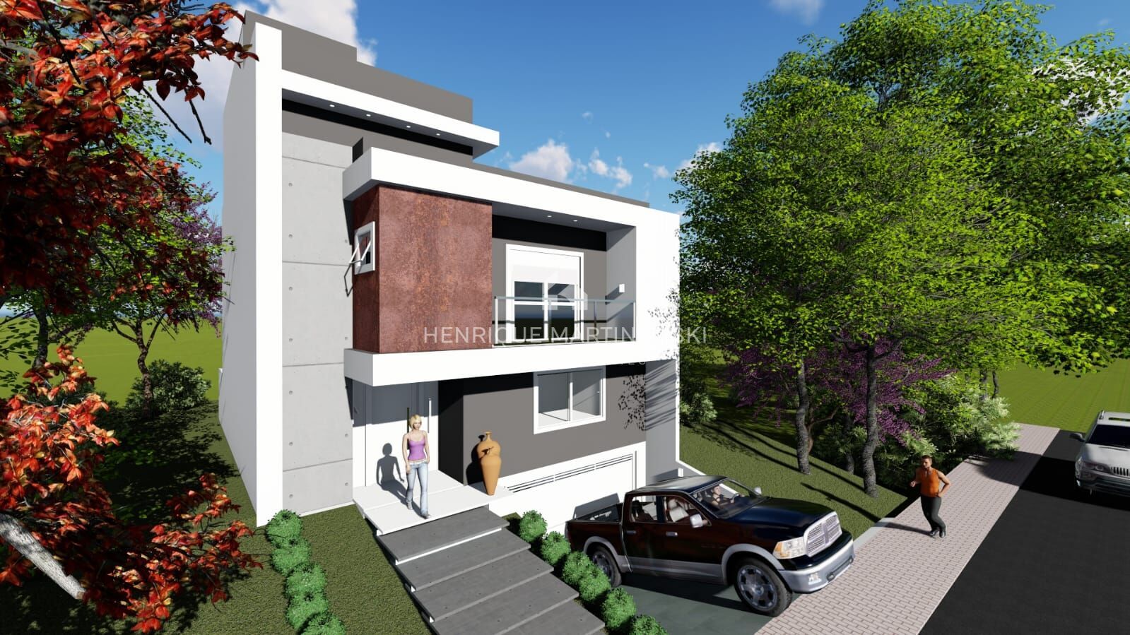 Sobrado com 3 quartos + 1 quarto opcional no ático, sendo duas suítes + 2 demi-suítes.