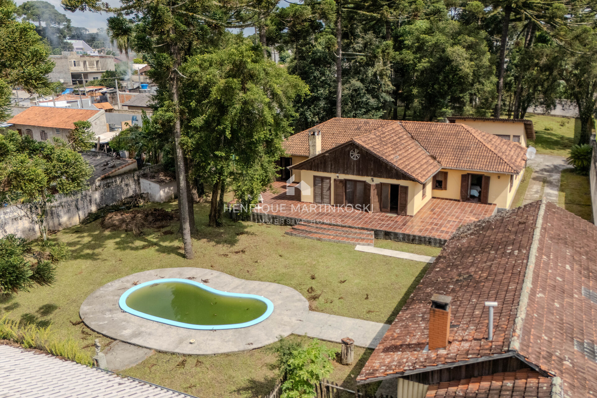 - Natureza ao redor: Um terreno generoso de 2.856m², cercado por árvores, incluindo belas araucárias, e vegetação exuberante, ideal para quem valoriza contato com a natureza.